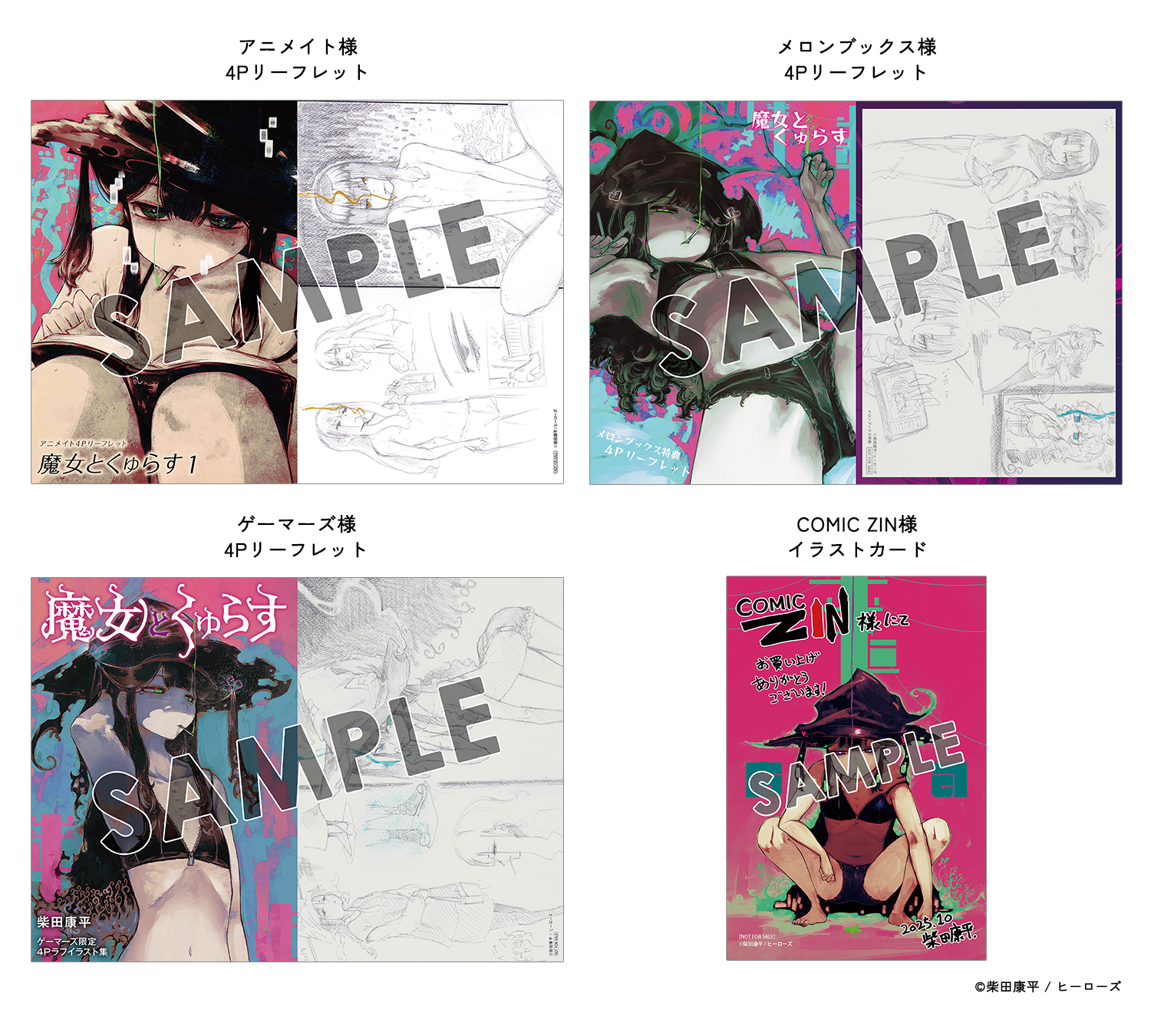 書泉ブックタワー様、書泉グランデ様、芳林堂書店高田馬場店様にて「『魔女とくゅらす』発売記念フェア」を開催いたします。色紙の展示や柴田康平先生直筆サイン入り複製原画の抽選プレゼントに加え、購入特典として色紙イラストカードを配布します。