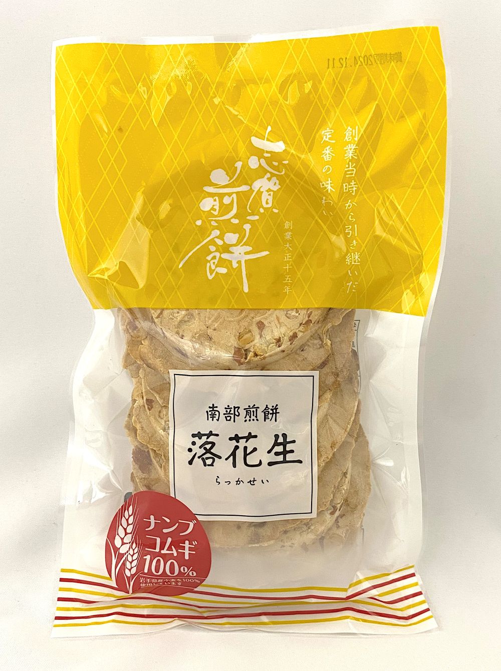 南部せんべいの定番中の定番、ピーナッツ南部せんべい。パリパリとした生地に、ほんのり甘いピーナッツが絶妙なアクセントになっています。