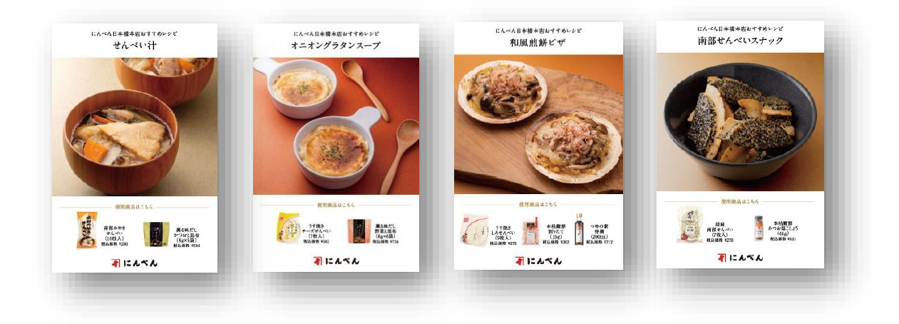 「志賀煎餅×にんべん おすすめレシピ」のレシピカードを、にんべん 日本橋本店の店頭にて配布いたします。