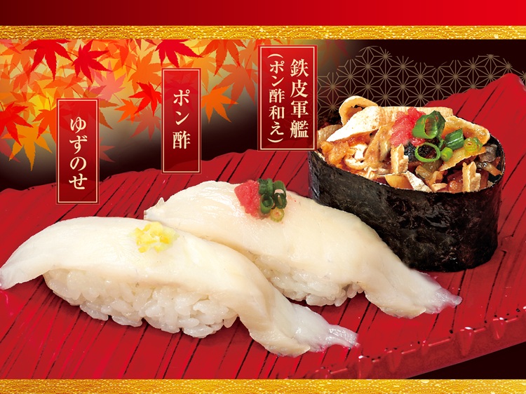 体が冷えるこれからの季節に食べたい秋冬の旨ネタ登場!あん肝、白子、とらふぐなど魅力あふれるネタが満載です♪うまい鮨勘では、回転寿司店舗・ゆとろぎ店舗、東北対面寿司店舗それぞれの業態で、季節限定メニューを販売します。