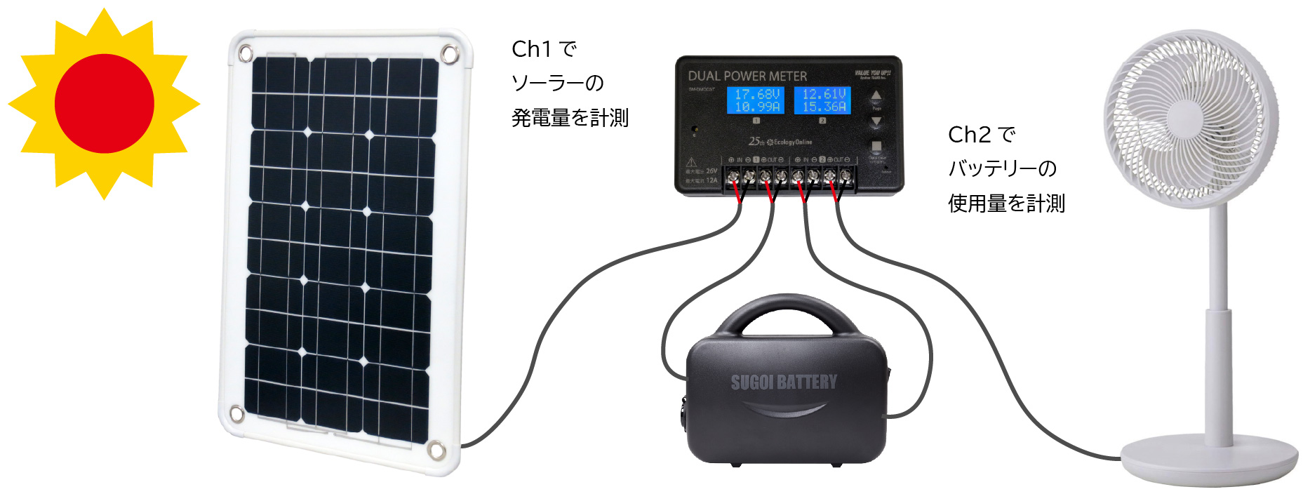 このため、屋外での太陽光発電量計測にも活用できます。
