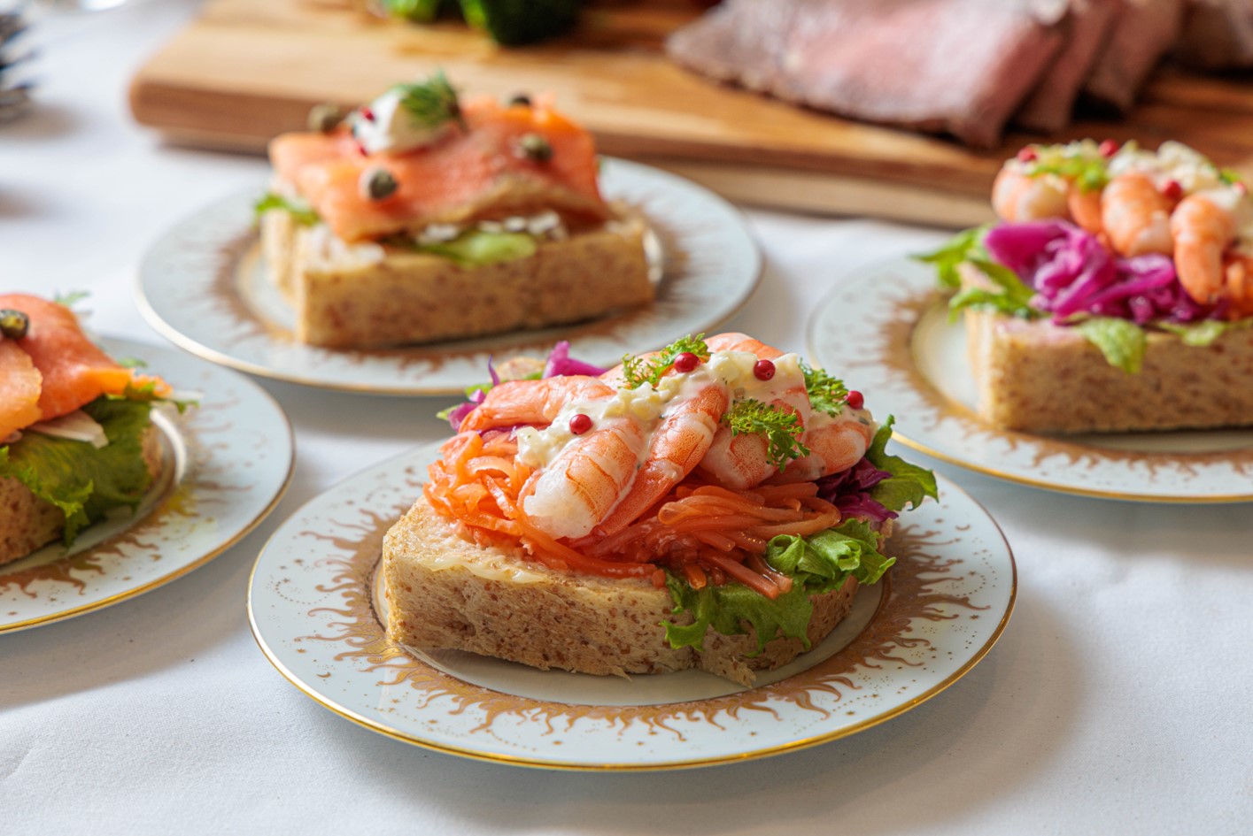 北欧の定番料理であるミートボールや皮をパリパリに焼き上げた豚肉料理「フレスケスタイ」、オープンサンド「スモーブロー」に加え、クリスマスの食卓に欠かせないローストチキンやビーフシチューなどクリスマスや北欧の非日常な世界観を味わえる華やかなメニューをご提供します。ご宿泊のゲストはもちろん、ブッフェのみのご利用もいただけます。