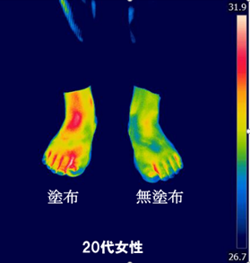 冷え性にはさまざまな原因が考えられますが、意外な盲点が「秋冬の汗」。制汗剤 デオナチュレを発売するシービックが20~40代の都内で働く女性を対象に行った「足汗と“冷え足”に関するモニターテスト」では、制汗剤塗布すると、足の汗の量が減り、靴を脱いだ時のヒヤっと感も少なく、サーモグラフィによって足の汗が少ないほうが足の冷えが防げることが分かりました。