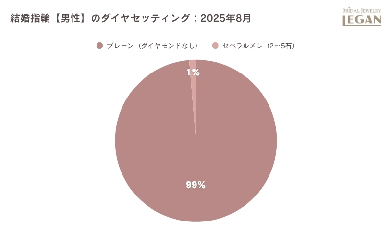 男性は、ほとんどの方がベースはダイヤ無しのプレーンリングをご選択ですが、ダイヤ有りを選んだ方が1%いらっしゃいました。