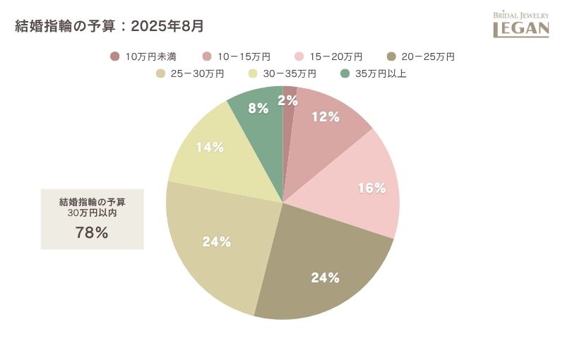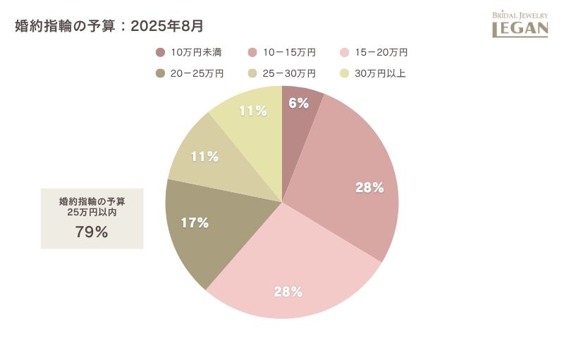 札幌店・旭川店・帯広店の3店舗を運営する婚約指輪・結婚指輪の専門店「BRIDAL JEWELRY LEGAN(ブライダルジュエリーレガン)」(運営会社:有限会社レガン 所在地:北海道岩見沢市 代表取締役社長:奥野賢一)は、2025年8月にご来店されたお客様を対象に婚約指輪および結婚指輪の予算に関するアンケートを実施致しました。
