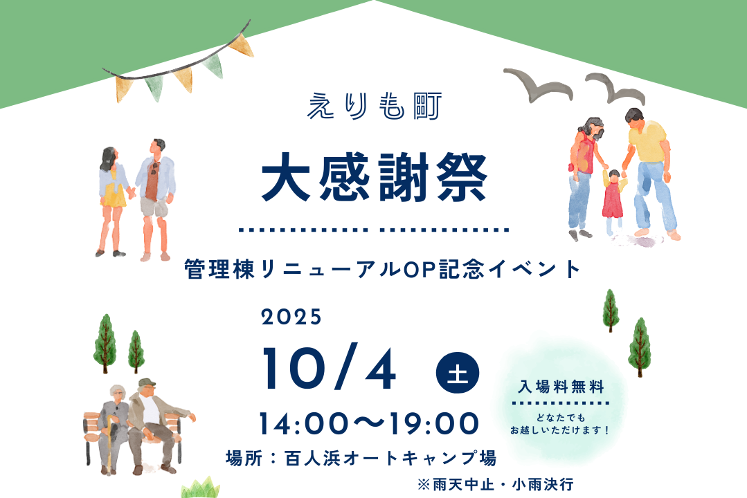 - イベント名:えりも町大感謝祭〜管理棟リニューアルオープン記念イベント〜