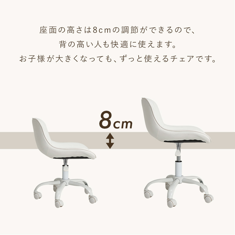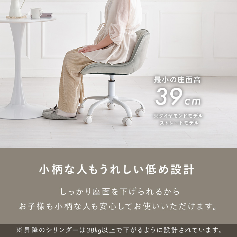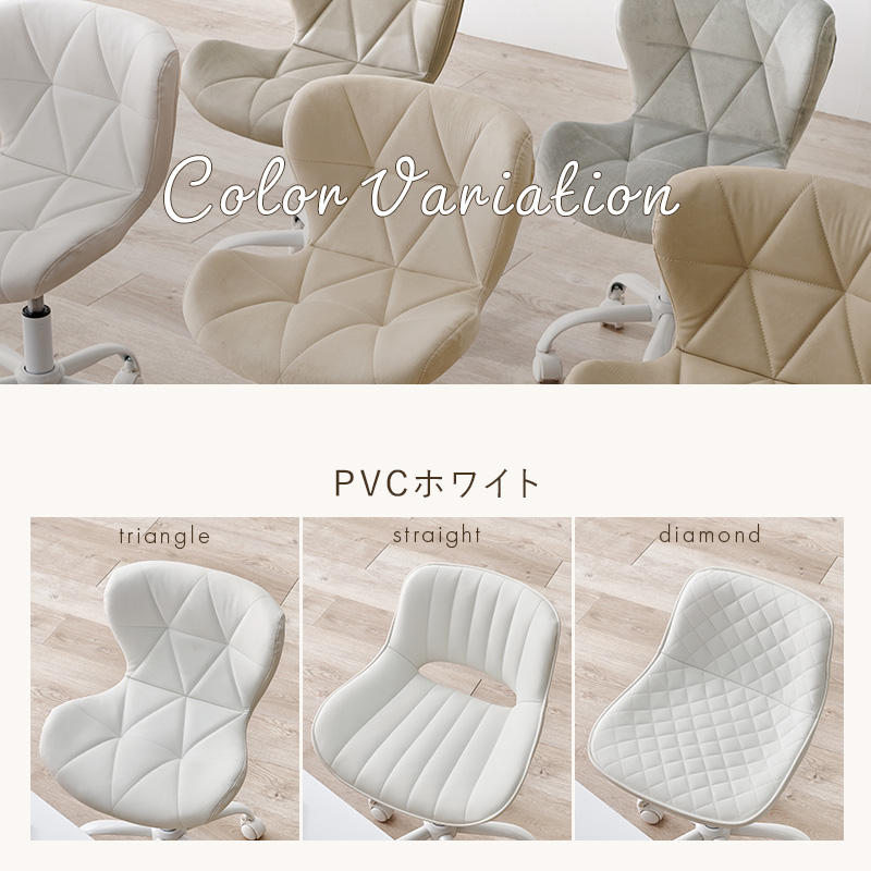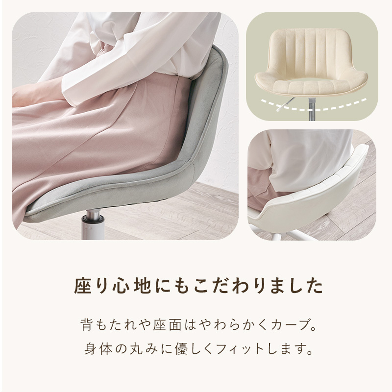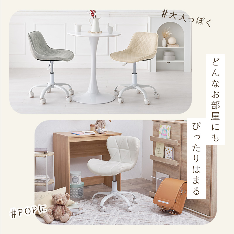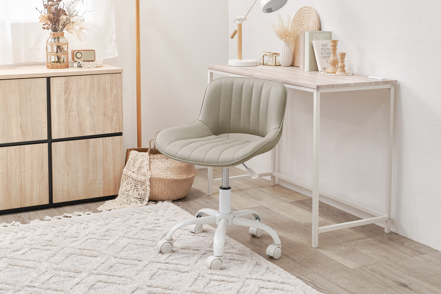 淡い色合いも可愛く、インテリアの一部としても楽しめるデスクチェアです。
