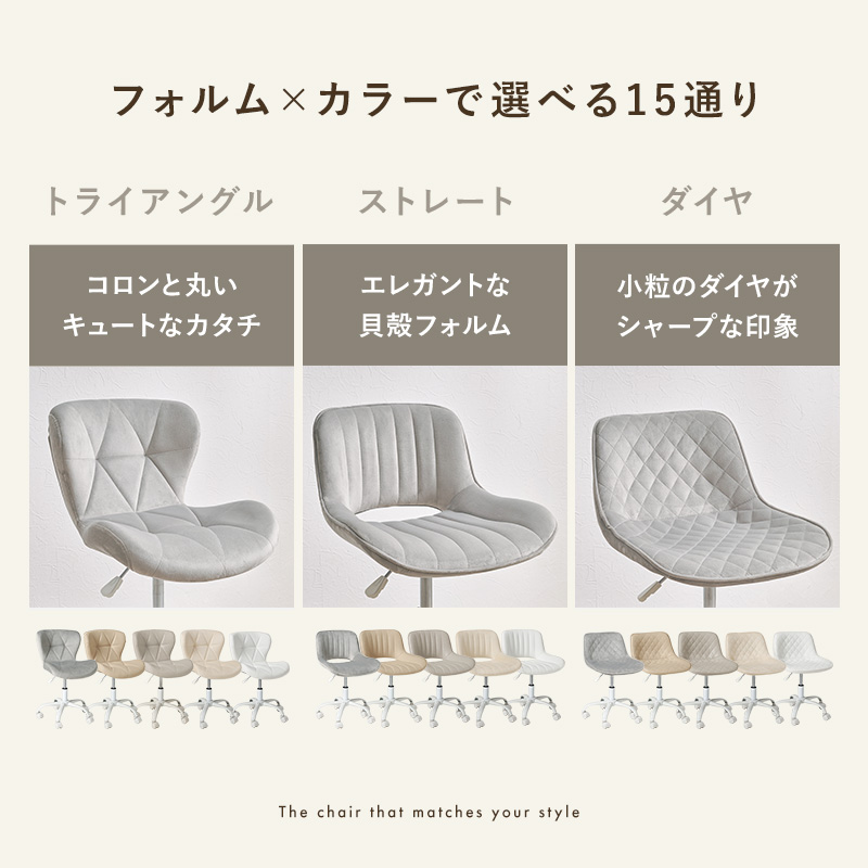 お部屋の雰囲気やデスクのテイストに合わせて、あなただけの一脚を選べます。