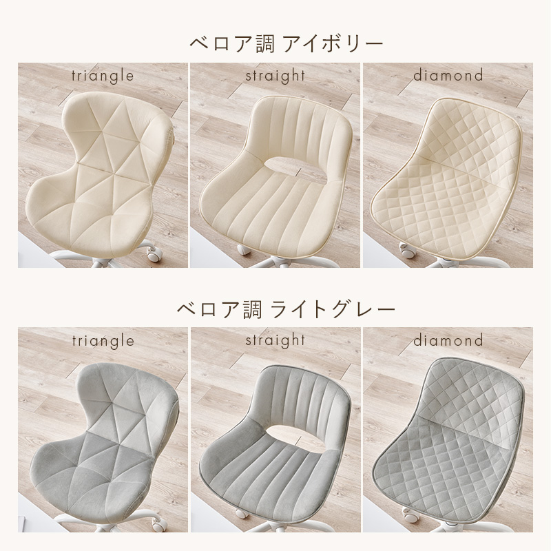 カラー展開:ベロア調2色(アイボリー/ライトグレー)、PVC3色(ベージュ/グレー/ホワイト)全5色