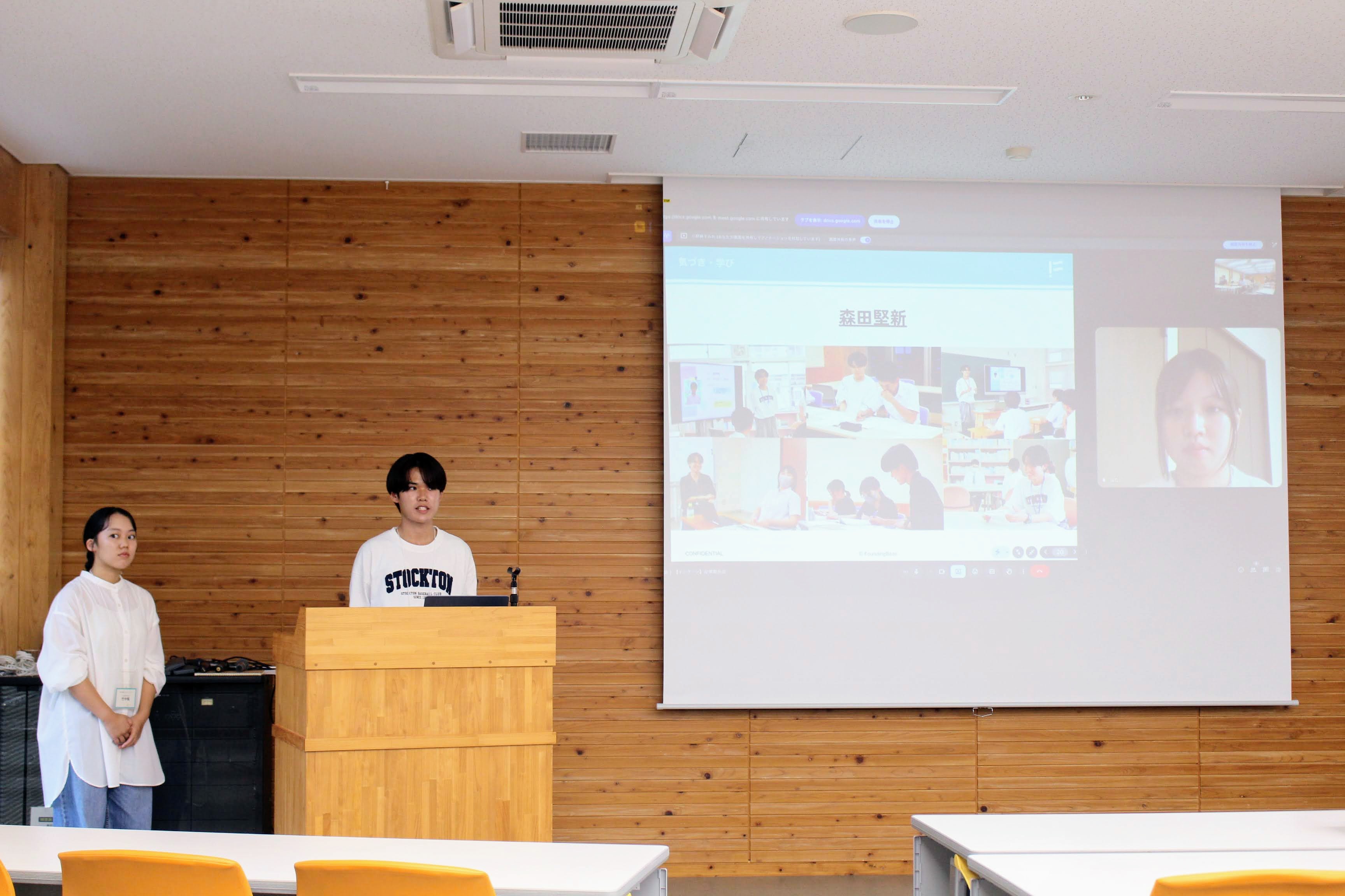 インターン終了時に行った町役場での活動報告会では、インターン生は「試行錯誤しながら生徒との信頼関係を築くことが、自分にとっての挑戦だった」「自分が通っていた頃には、こんなにも丁寧に準備してくれていたとは想像もしていなかった」などと発表していました。