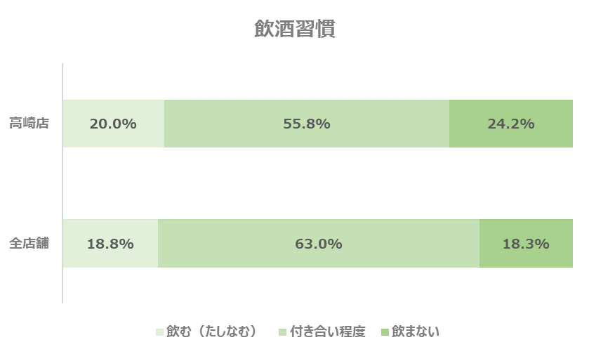 ・飲酒の習慣「飲まない」人の割合、全店舗に比べやや高め