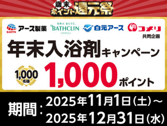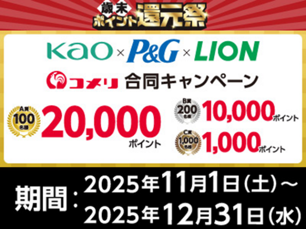 ホームセンターの「コメリパワー」や「コメリハード&グリーン」を通し地域のライフラインであり続けたいと願う株式会社コメリ(所在地:新潟県 新潟市、代表取締役社長:捧 雄一郎)は、コメリの決済手段「コメリカード」「アクアカード」会員様特典として、2025年11月1日(土)より、「歳末ポイント還元祭」を開催いたしました。