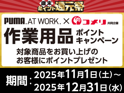 今年を締めくくるお買い物は、歳末ポイント還元祭実施中のコメリで。どうぞこの機会にご利用ください。