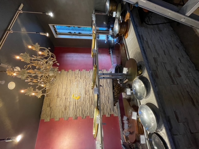 入口背面やレジカウンターの背後などにメタリックトーンを用いることで