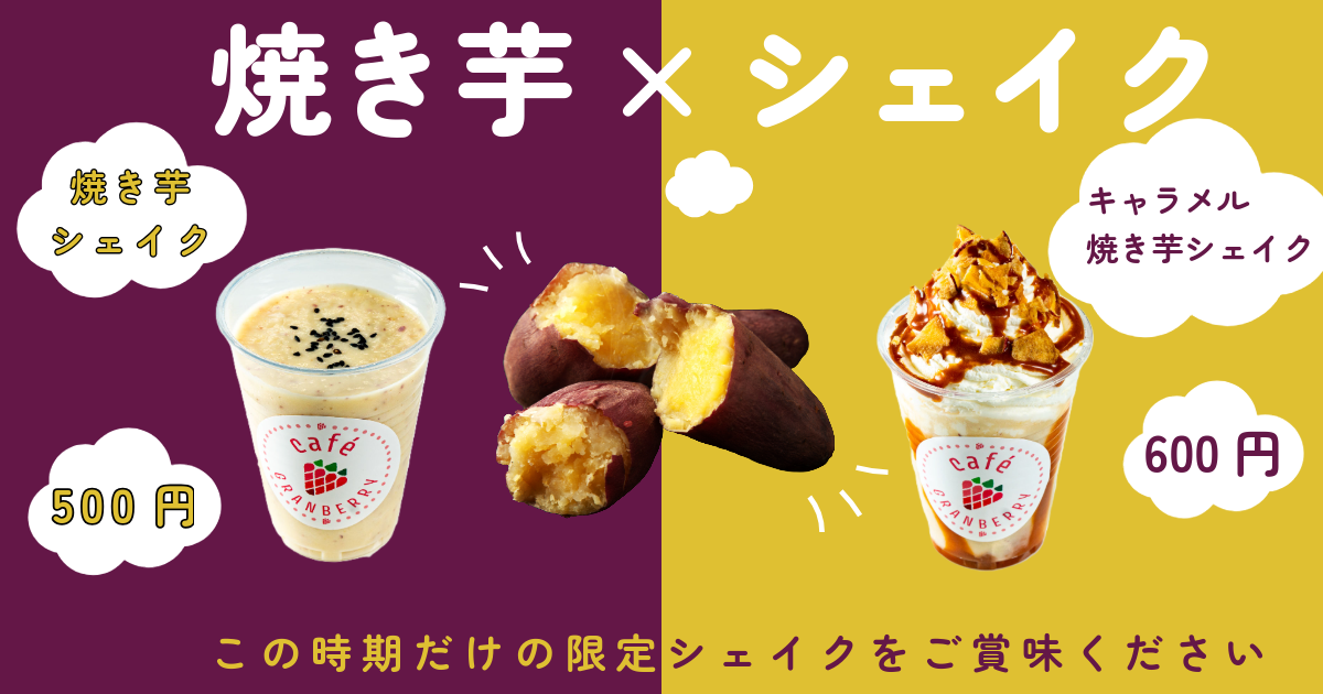 カフェグランベリーのラインナップに2種類の焼き芋シェイクが登場。