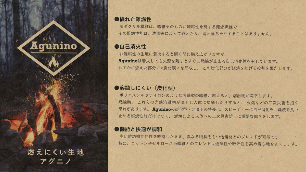 「アグニノ」は、モダグリル繊維を使用した難燃ファブリックです。