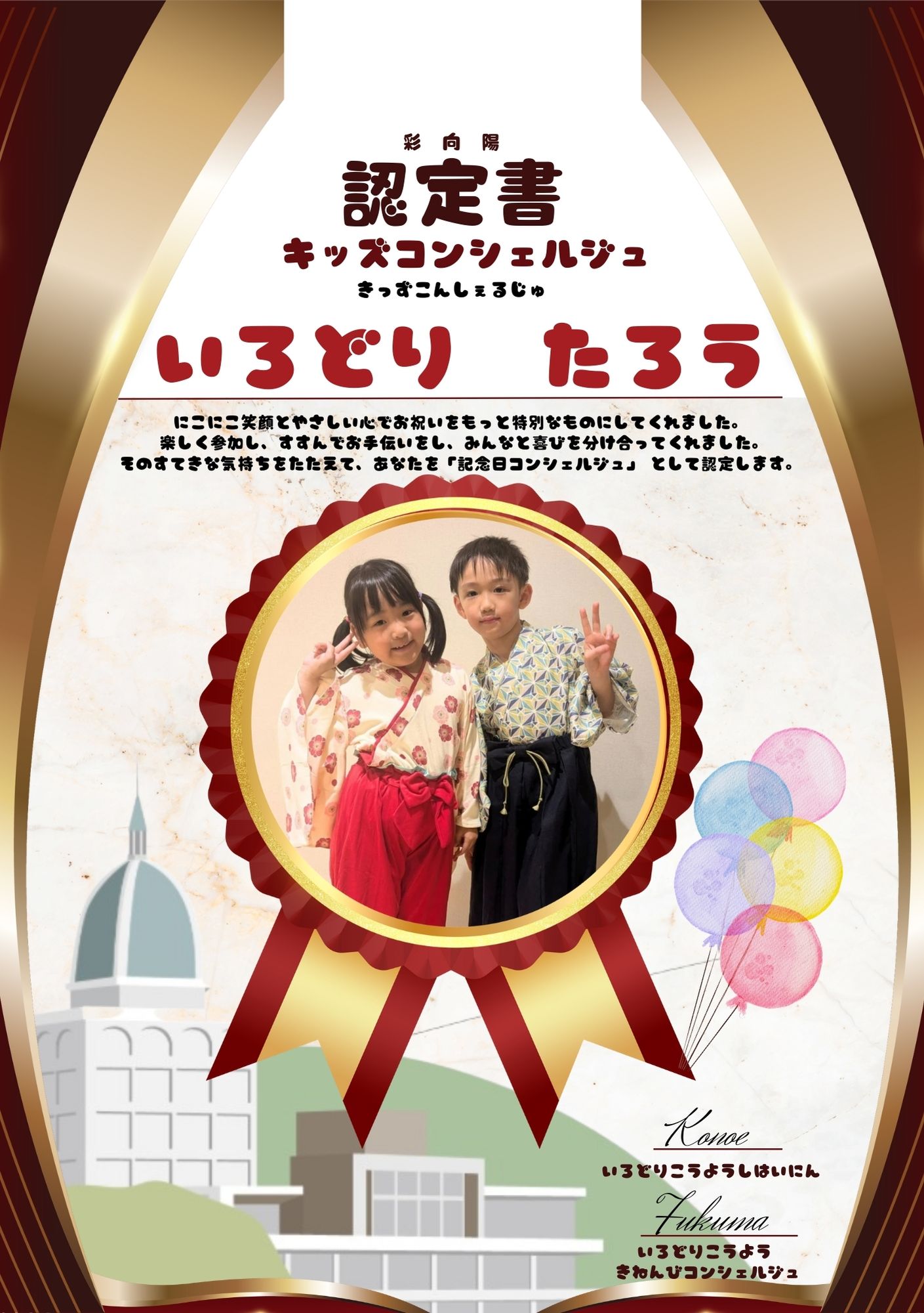 4.お手伝いいただいたお子様にはサプライズ終了後、「彩向陽キッズコンシェルジュ認定証」を贈呈