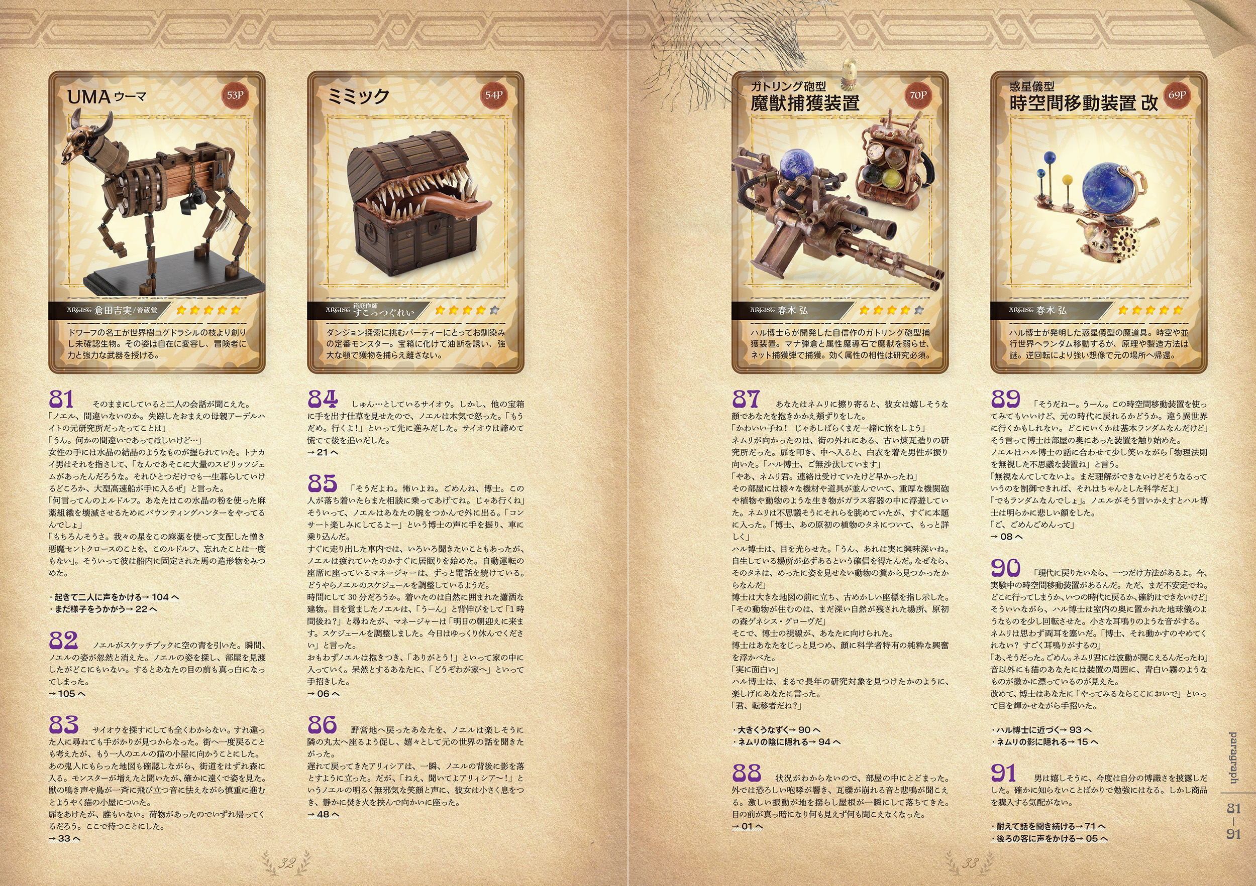 読者の選択によって、物語に登場するアイテムが異なり、展開や結末が変化する。癖のあるアイテムの特性なども物語の中で明らかになる。