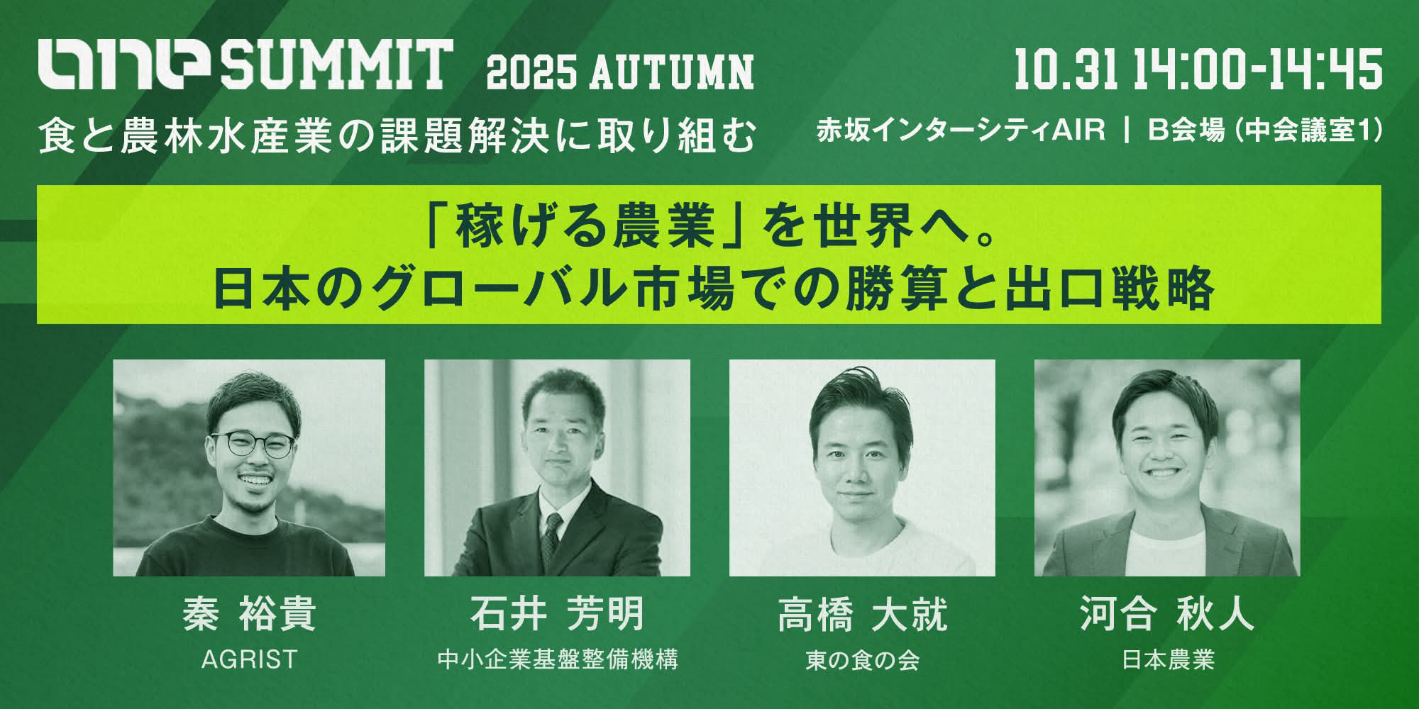 農林水産業の課題を解決、食料自給率38%の日本に挑む——官民×スタートアップ、200名超が赤坂に結集 『ONE SUMMIT 2025 Autumn』開催レポートを公開