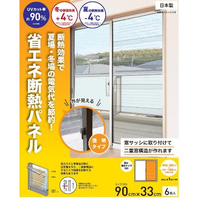 省エネ断熱パネル 透明タイプ 90×33cm 6枚入り