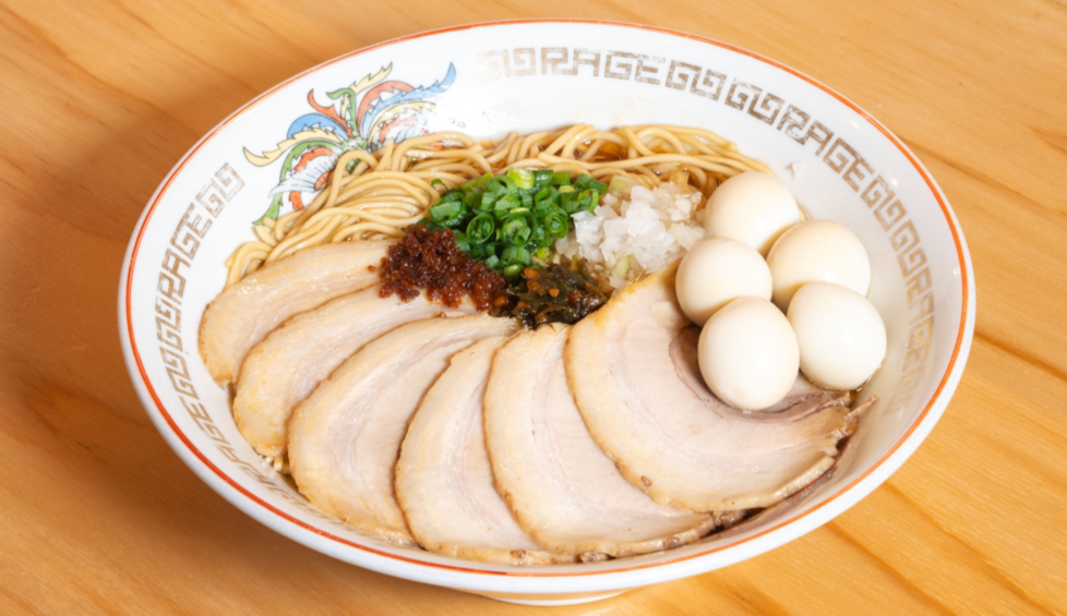 名物の「熟成醤油ラーメン肉そば」は旨みの強い豚肉を、手鍋調理で炊き込み柔らかく仕上げる絶品醤油スープのラーメンです。