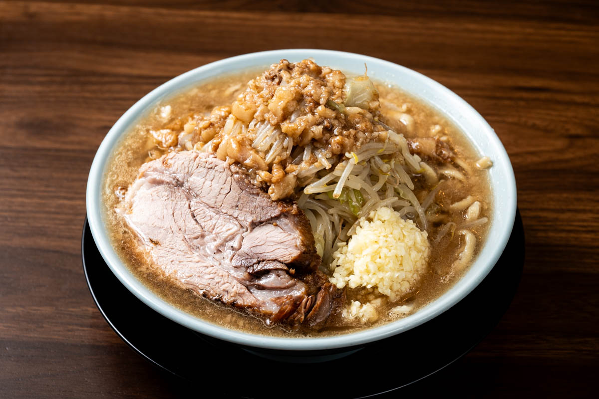 ド級サイズの豚と、肉と野菜の甘味がしっかり出ている豚骨醤油味ベースの絶品スープ!是非ご堪能ください!