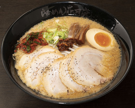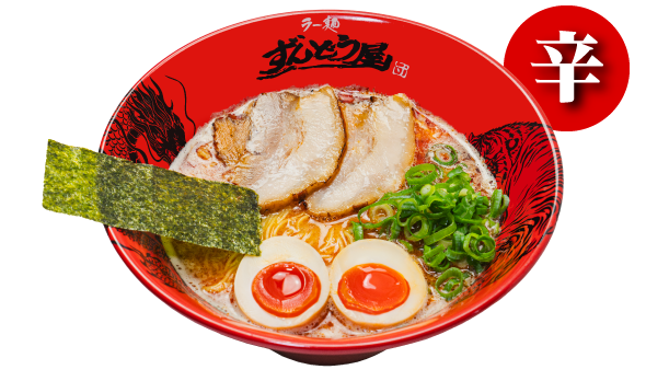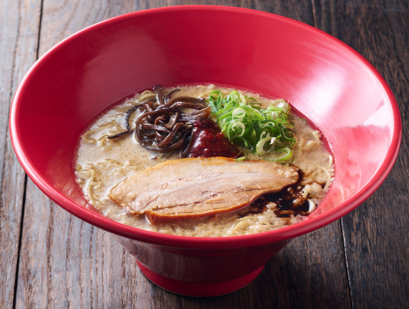 にんにくの風味が効いた香油と特製の辛味噌を溶かしながら楽しむ、コクと深みの一杯。スープには、醤油ベースのかえしと背油を使用。深みのあるとんこつスープと相性の良い、小麦が香る中細麺に、柔らかくジューシーな厚切りバラチャーシューをのせて。白丸が正統派ならば、赤丸はとんこつラーメンの可能性を広げた革新派。