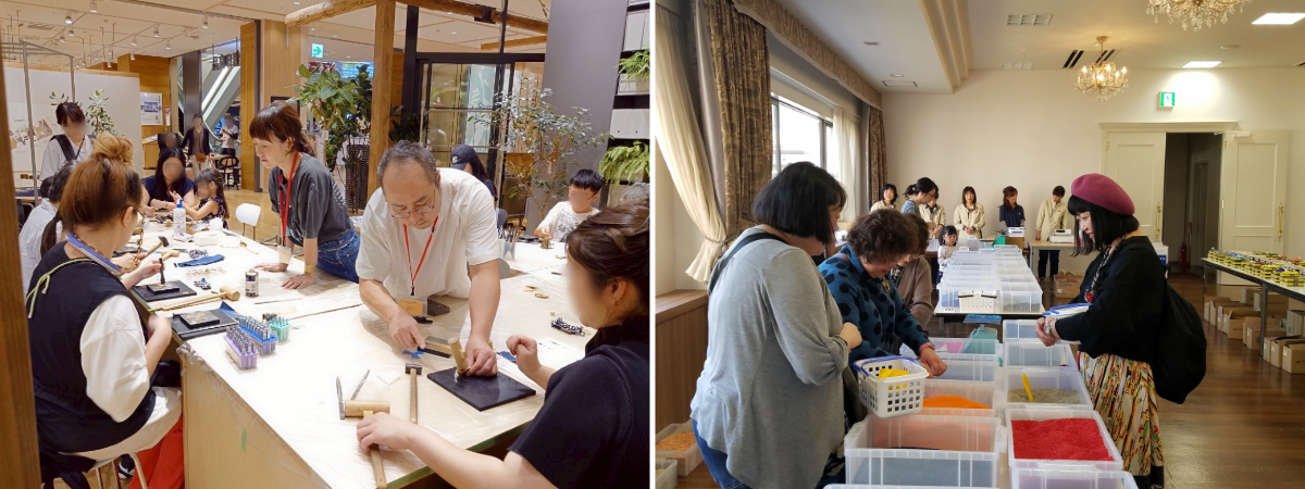 各社の職人から直接教わりながら、自分だけのオリジナル作品づくりを体験できます。遊び心のある多様なワークショップをご用意しています。普段は知ることのできない産業の奥深さ、世界に誇る技術を肌で感じられる貴重な機会です。