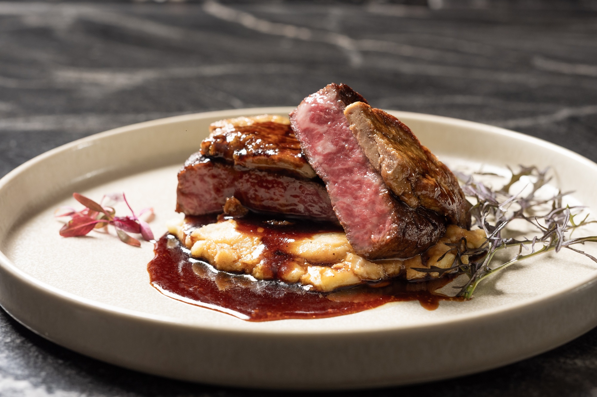 九州の広大な大地で優雅に育った博多和牛ヒレのしなやかな肉質に、