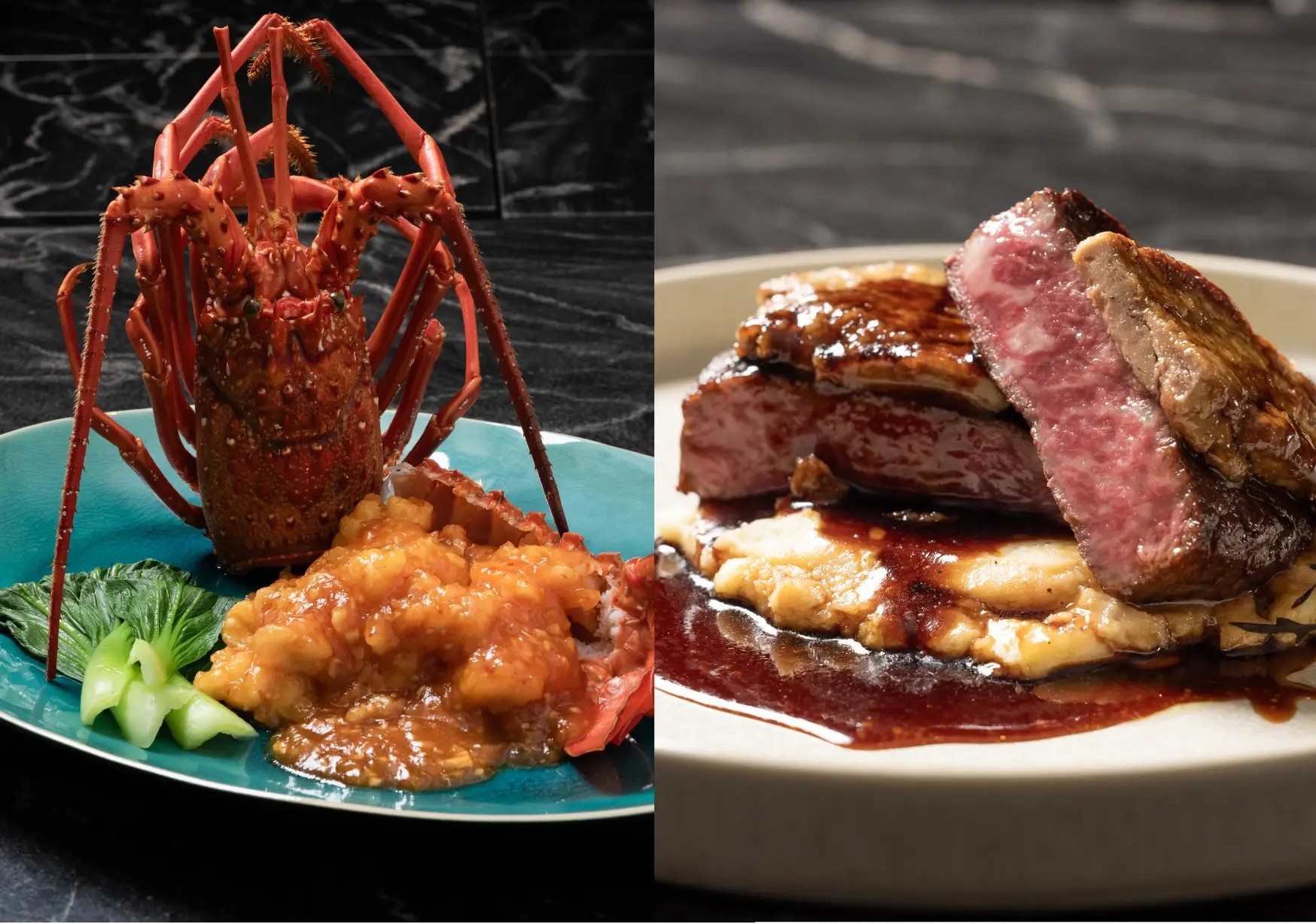 希少な特大伊勢海老を贅沢に使用した〈伊勢海老のチリソース〉、しなやかな肉質を誇る博多和牛にフォアグラとトリュフを合わせた〈博多和牛のロッシーニ〉の二品を、特別コースとしてご用意いたしました。