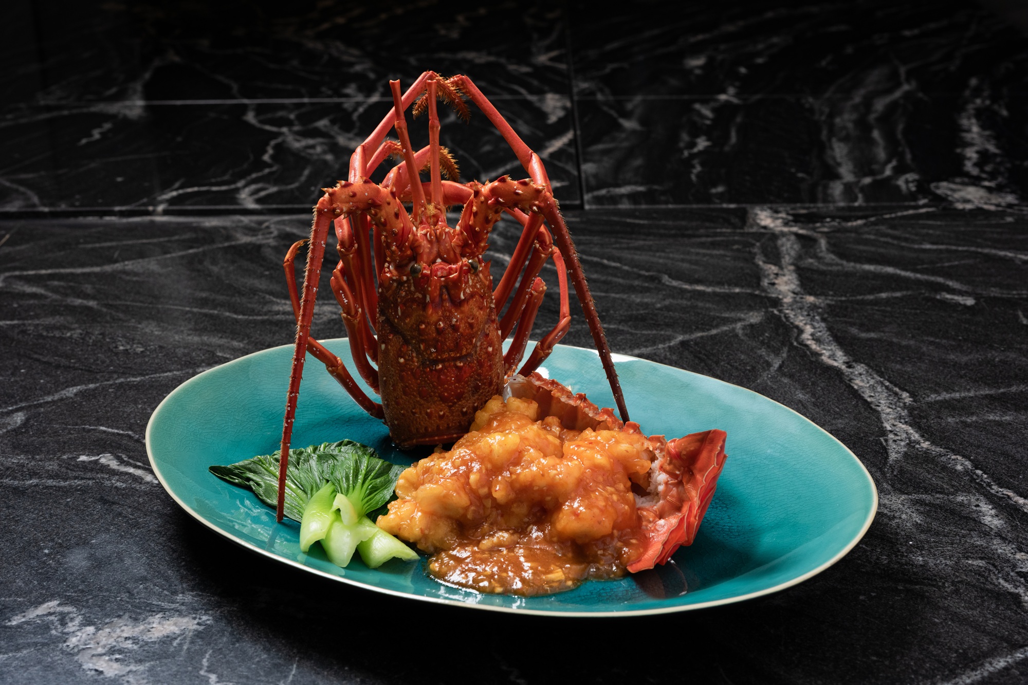 希少な特大伊勢海老を贅沢に使用し、チリソースと和えた逸品。