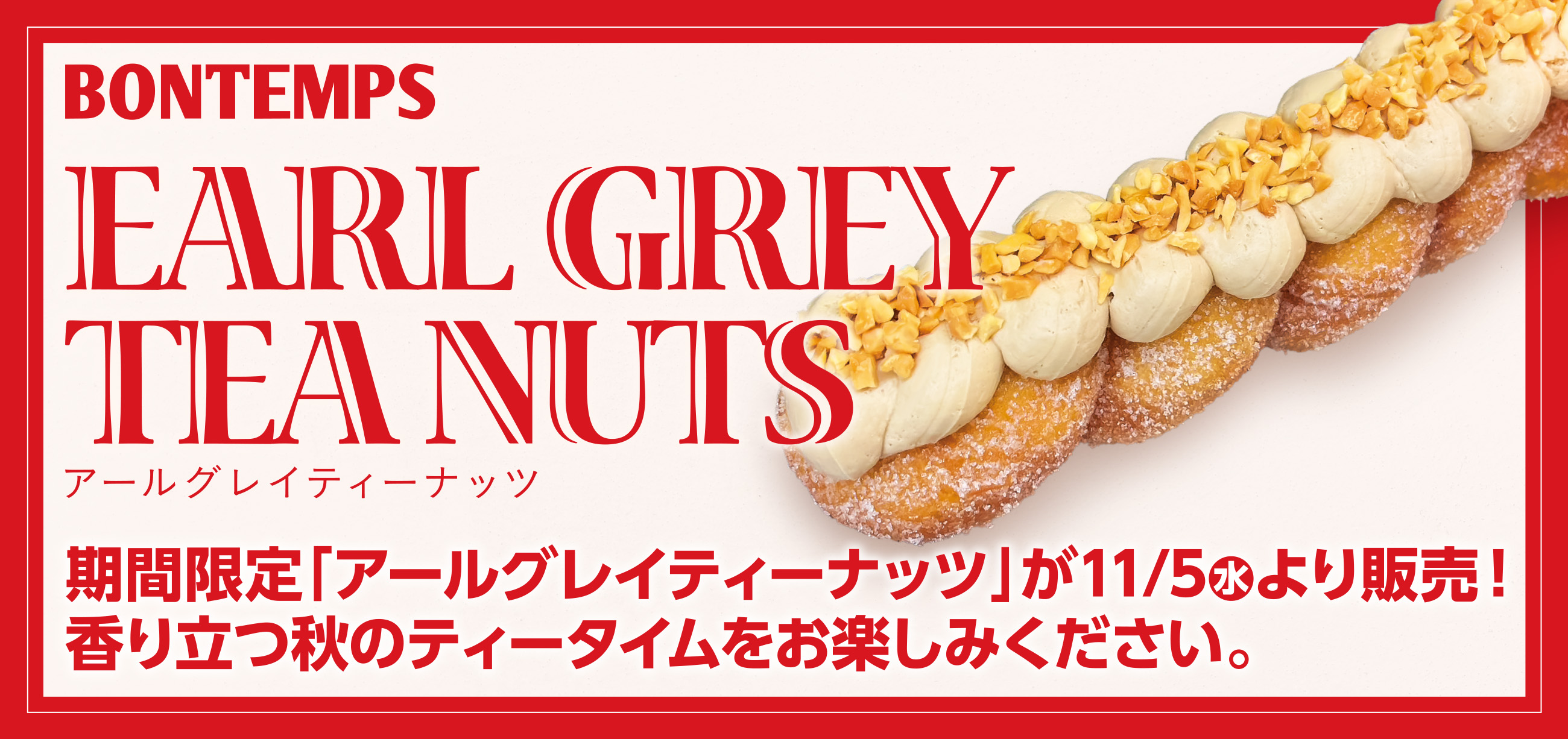 《BONTEMPS》期間限定「アールグレイティーナッツ」が11/5(水)より販売!香り立つ秋のティータイムをお楽しみください。