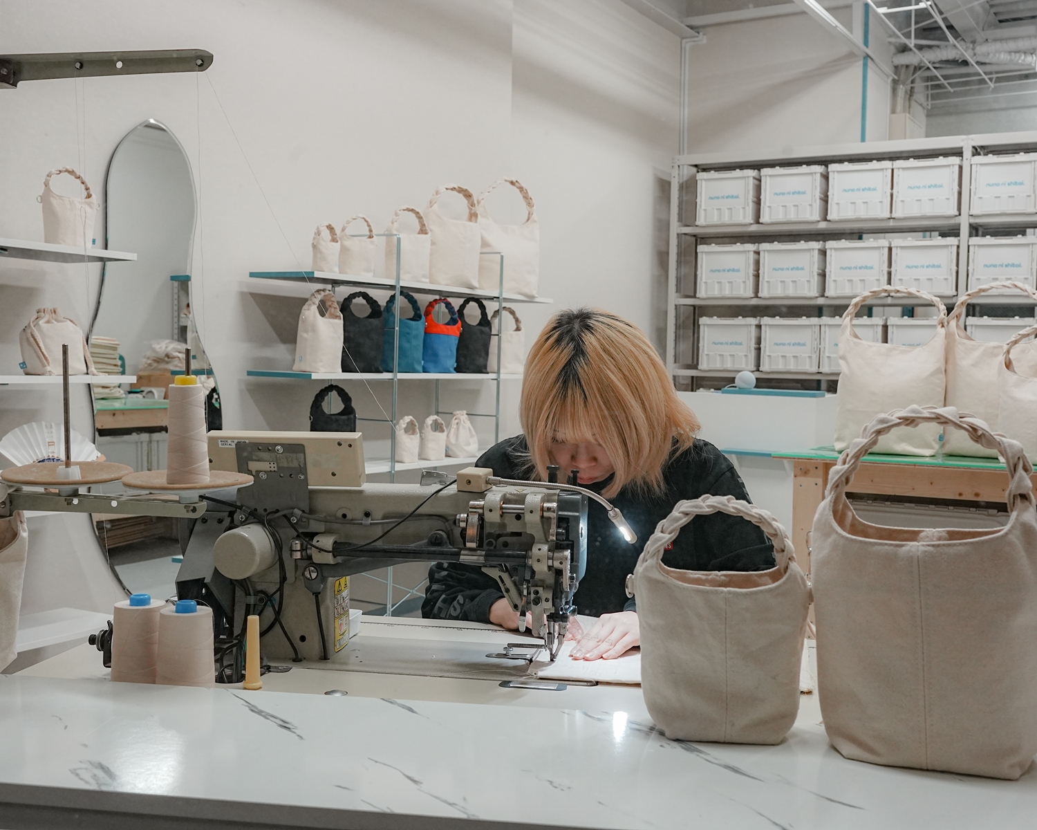 2025年創業の縫製工場。婦人服やバッグの縫製を専門に請け負う。人とモノ・自然・文化が繋がるきっかけを与えたいという思いから、2024年に初の自社ブランド「nuno ni shitai.」を設立。発売した「三つ編みバッグ」は高島ええものグランプリで審査員特別賞を受賞し、発売後は即完売となっている。