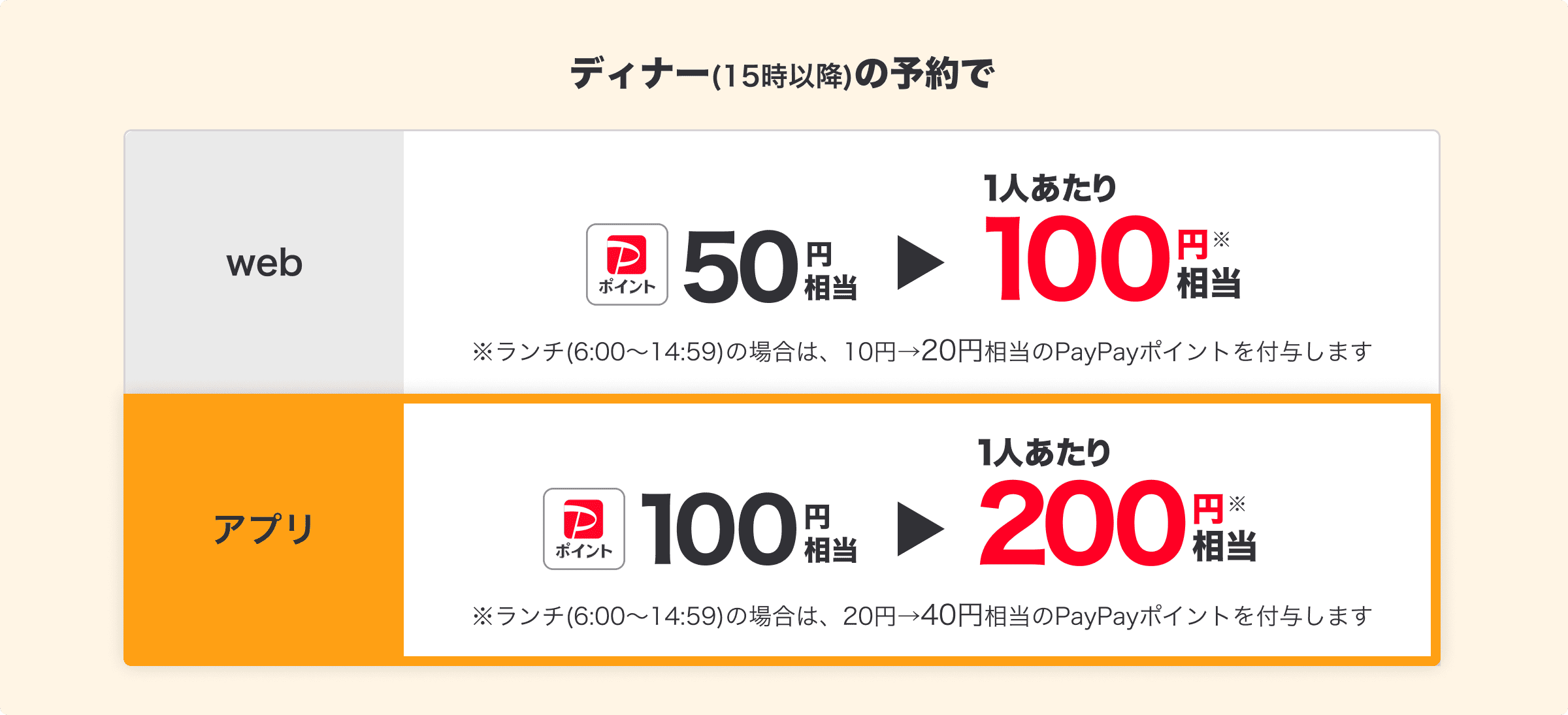 ・PayPayアカウントを連携しているRettyアカウントにログインした状態で予約が完了していること
