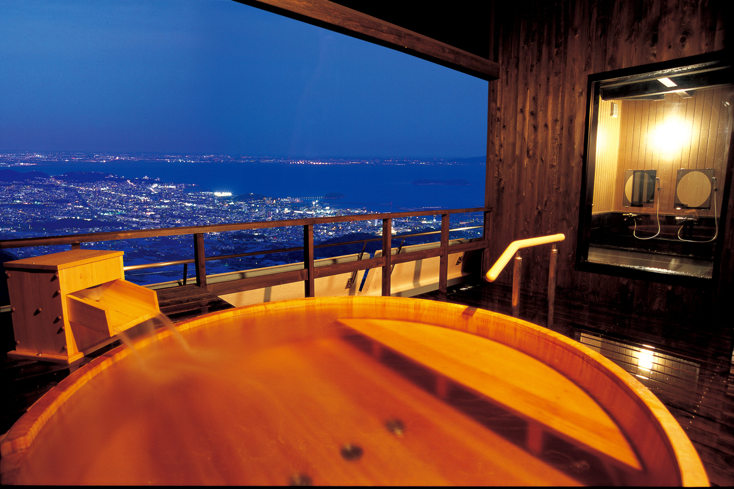 三河湾を望む絶景露天風呂や客室露天風呂のある旅館です。東に三河湾、西に名古屋方向を見下ろす山頂にございます。標高380mの解放感のある展望露天風呂からの景色は魅惑のスポットです。
