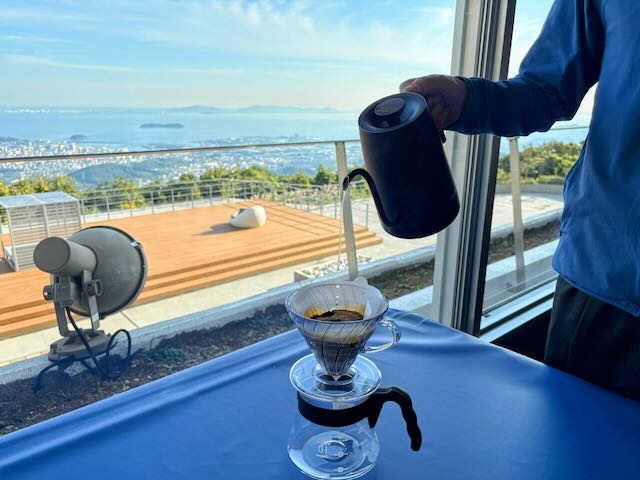 愛知・遠望峰山頂の三河湾が一望できる温泉宿「天の丸」、 蒲郡の人気店「tara café」とのコラボで新たな“体験型コーヒーサービス”を11月8日スタート