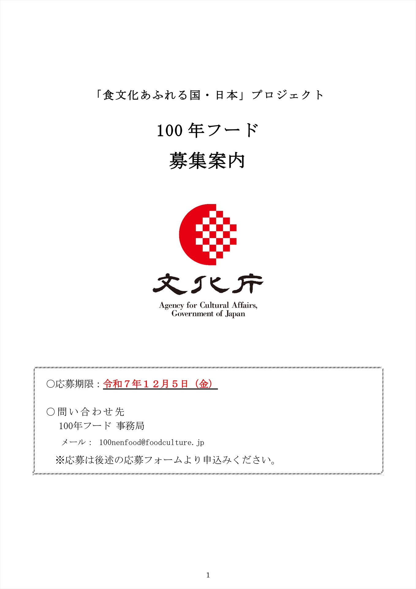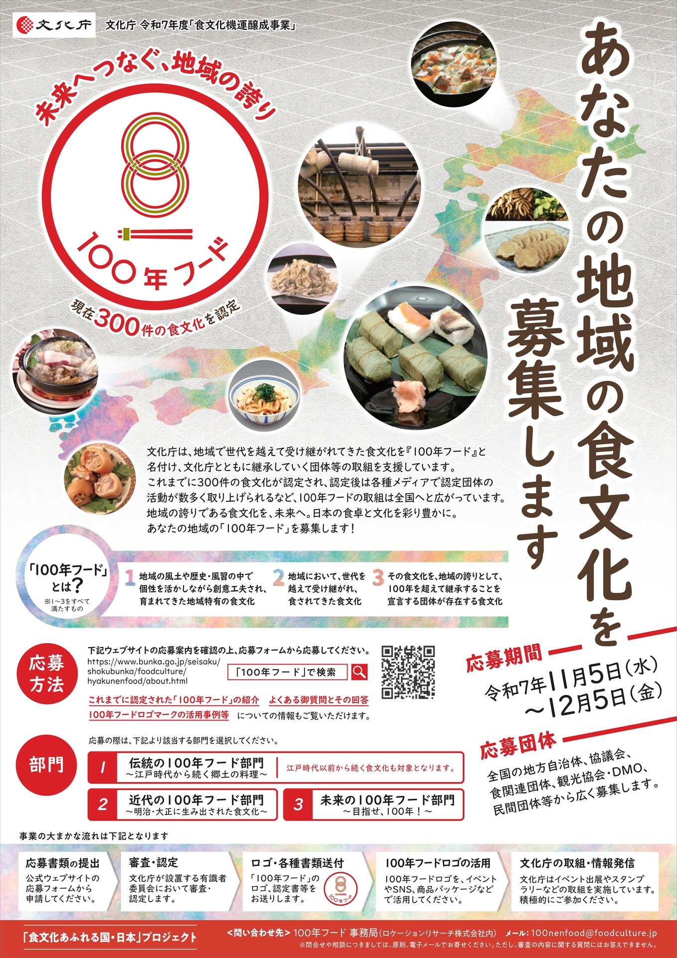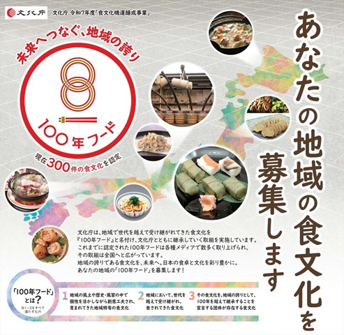 全国にひろがる「100年フード」は現在300件を認定!未来へつなぐ地域の食文化を本年度も募集します! 募集期間:令和7年11月5日(水)~12月5日(金)