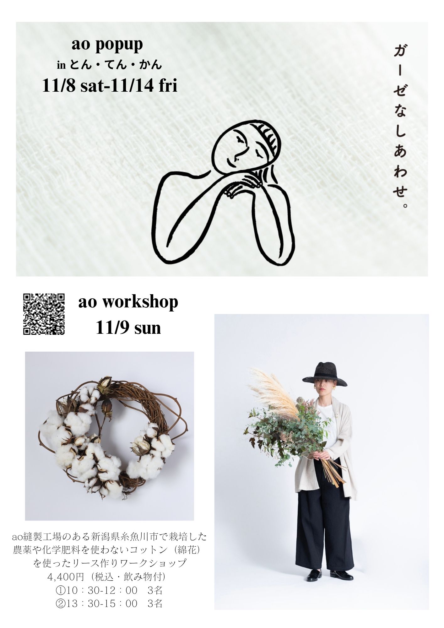 「“洗いざらし”のよさを感じるガーゼ服」をつくり続けるブランド ao のポップアップとワークショップを開催します✨