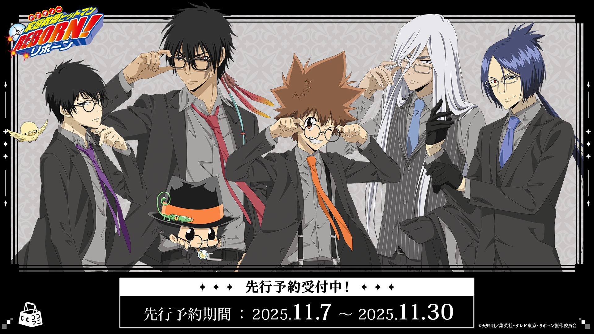 TVアニメ『家庭教師ヒットマンREBORN!』より、 スーツ×メガネの描き下ろしイラストを使用した新作グッズ先行予約開始のお知らせ