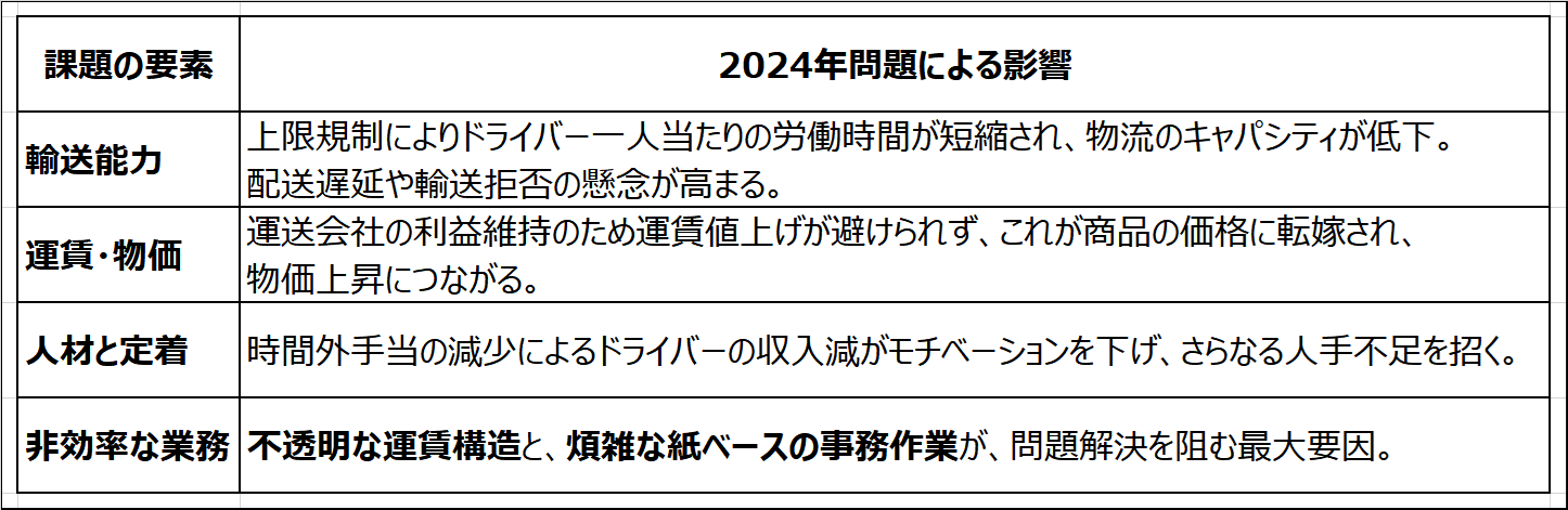この問題の最も深刻な影響は、単に「ドライバーが足りない」ことだけではありません。非効率なアナログ業務が原因で、