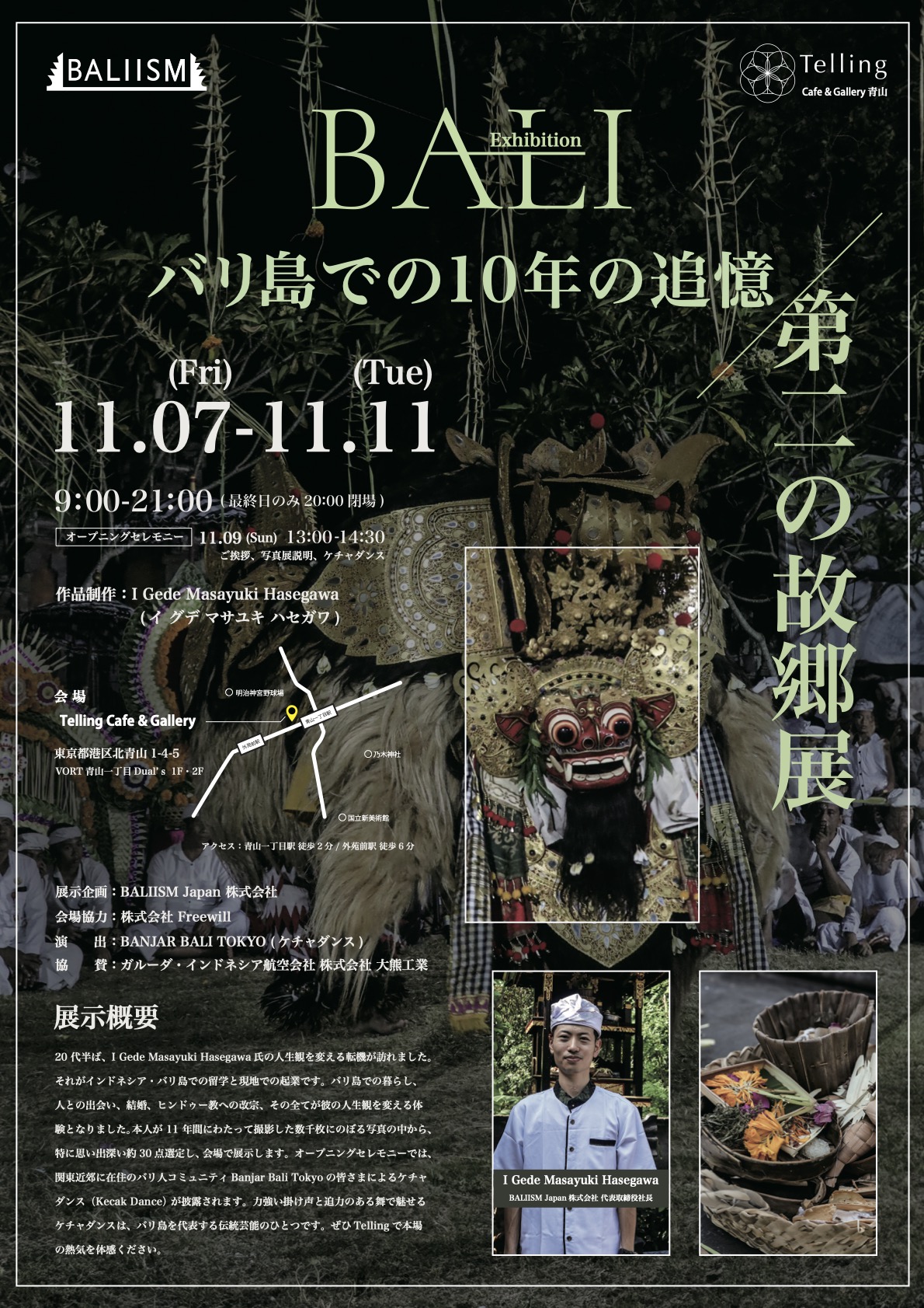 2025年11/7(金)〜11(火) 東京・青山のアートギャラリー「Telling Cafe & Gallery」でバリ島と日本を行き来しながら2拠点生活を送っている、起業家でありアーティスト I GEDE MASAYUKI HASEGAWA (長谷川 真之)による【写真展 - 第二の故郷展〜バリ島での10年の追憶〜】を開催します。