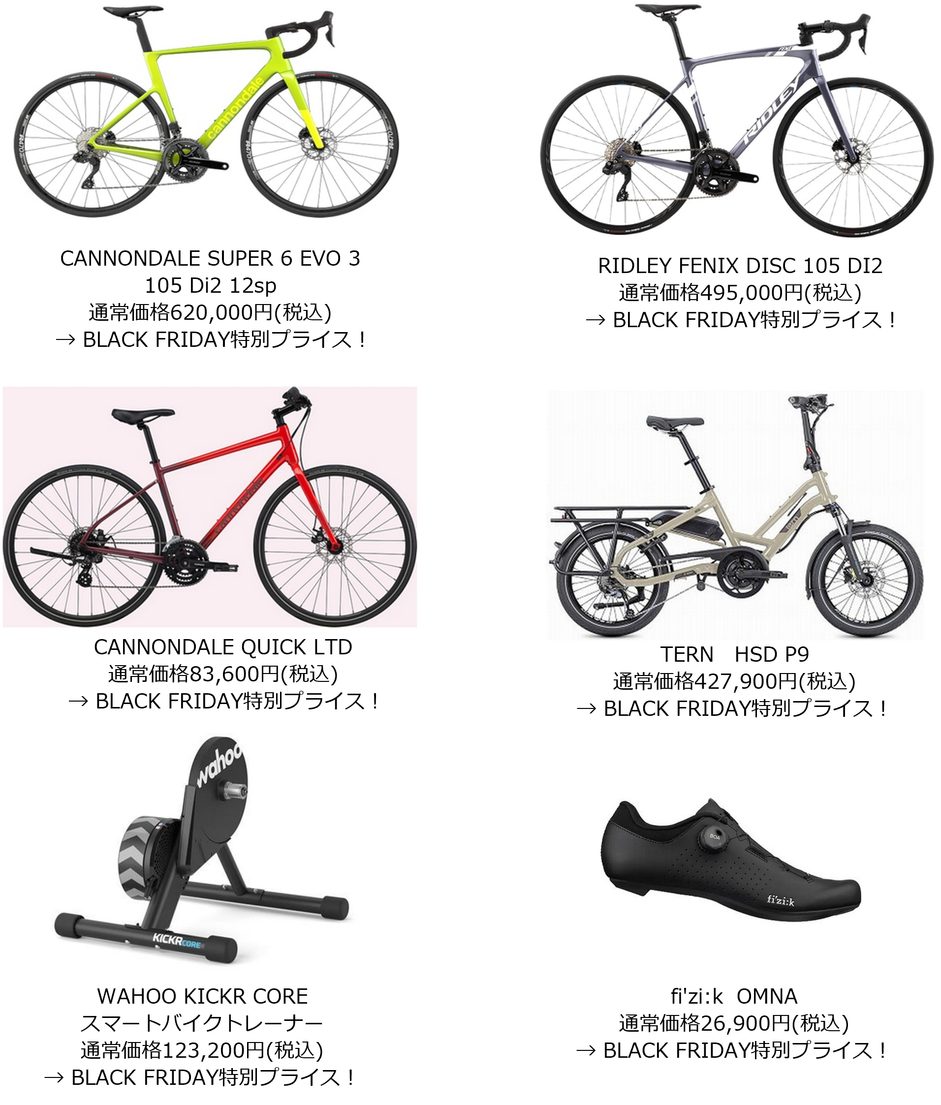 今年の「2025 BLACK FRIDAY SALE」では、人気ブランドのロードバイク、クロスバイク、フォールディングバイクなど約2,000台のスポーツ自転車を対象に大幅値下げを実施します。さらに、フレーム、ホイール、シューズ、ウェア、スマートトレーナーなど、サイクルライフを支える多彩なアイテムもお得な価格でご提供します。ワイズロードオンラインでは、人気ブランド商品やメーカー放出品、特価品がさらにお値引きとなる限定タイムセールも開催。限定タイムセール開始情報は、メールマガジンにてお知らせいたします。