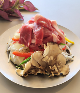 1)ファームレストランで、対象メニューをご注文のお客様に、旨味たっぷりのまいたけトッピングサービス!