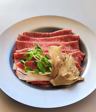 秋の澄んだ空気の中で味わうジューシーなお肉と香り豊かなまいたけの共演。