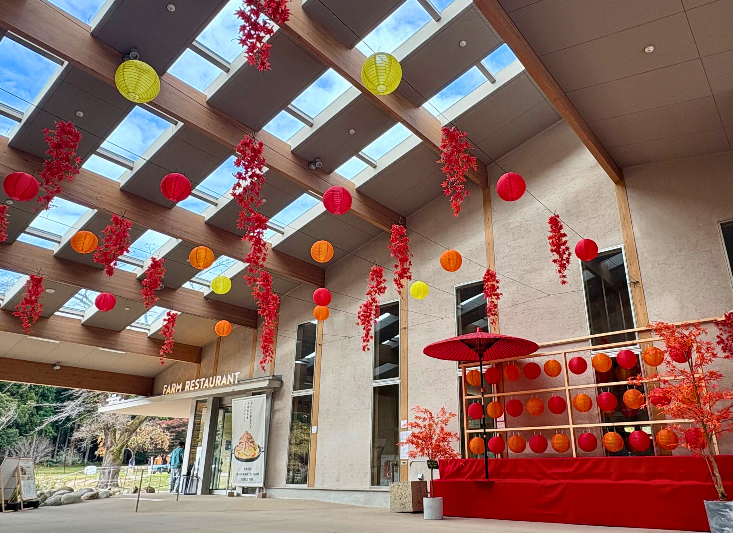 牧場ならではの紅葉イベントをより一層楽しんでいただけるよう、にぎわい広場や桜並木通りには紅葉をテーマにしたフォトスポット装飾を設置。秋色に包まれた牧場の風景を背景に、写真撮影をお楽しみいただけます。