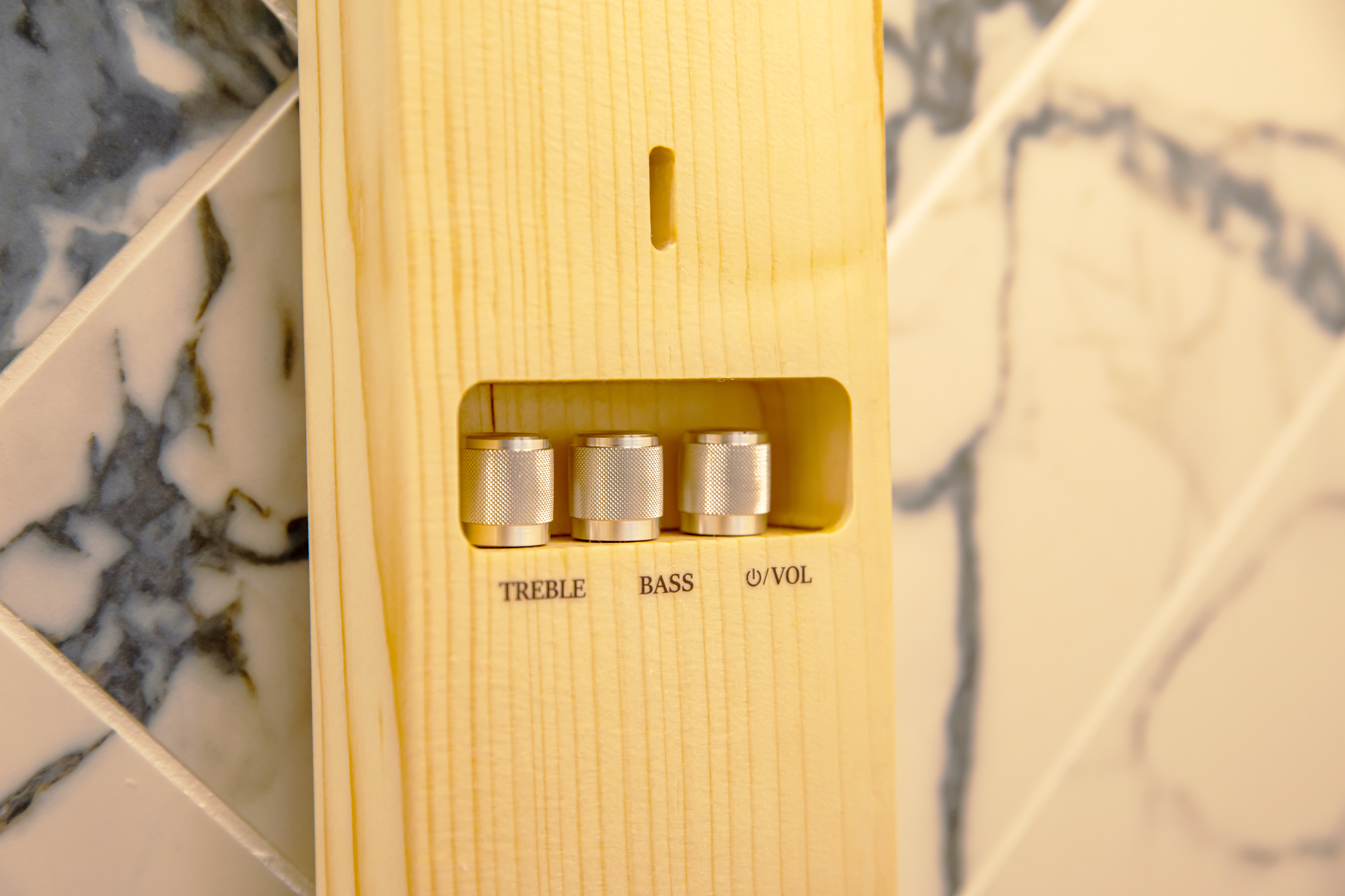 特長 厚み4cmの薄型設計、天然木筐体、縦型デザイン