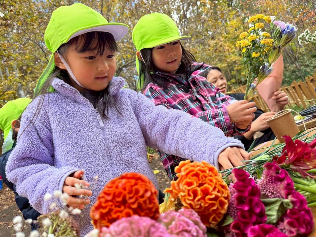 子どもたちは花の色や香り、季節のうつろいに触れながら、普段はなかなか経験できない“命あるものに触れる”時間を過ごしました。