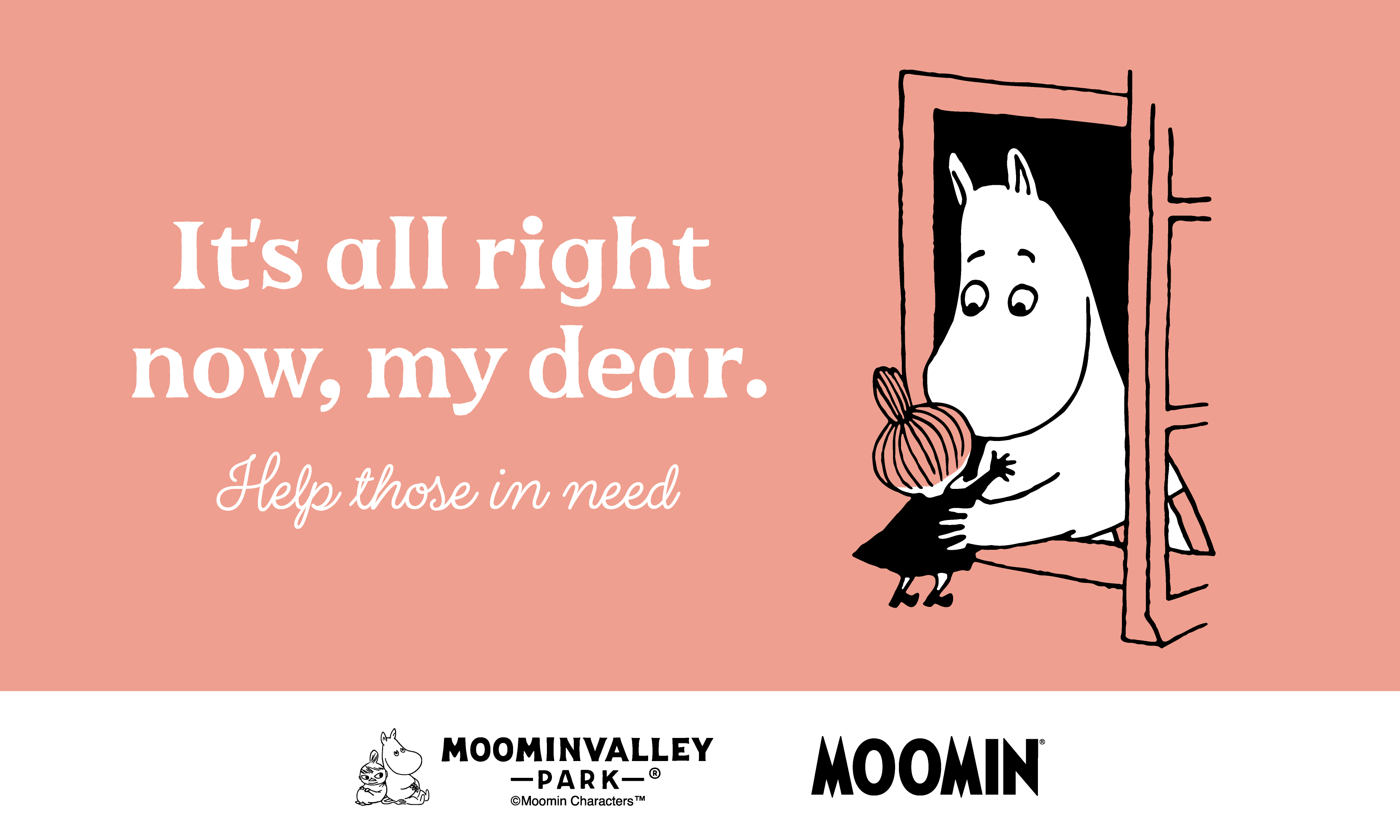 ムーミンバレーパークと国連UNHCR協会の取り組みは、ムーミンママの温かさ、寛容さ、愛に焦点を当てています。キャンペーンの名称「It’s all right now, my dear.」は、小説『ムーミン谷の仲間たち』に登場するムーミンママのセリフで、「dear(大切なあなた)」は、ムーミンママの愛と思いやりを示す言葉。難民の子どもたちが大切にされ、価値を認められていると感じながら子ども時代を送ることができるように助けるという、キャンペーンの目標を体現したキャッチコピーでキャンペーンアートをデザインしました。