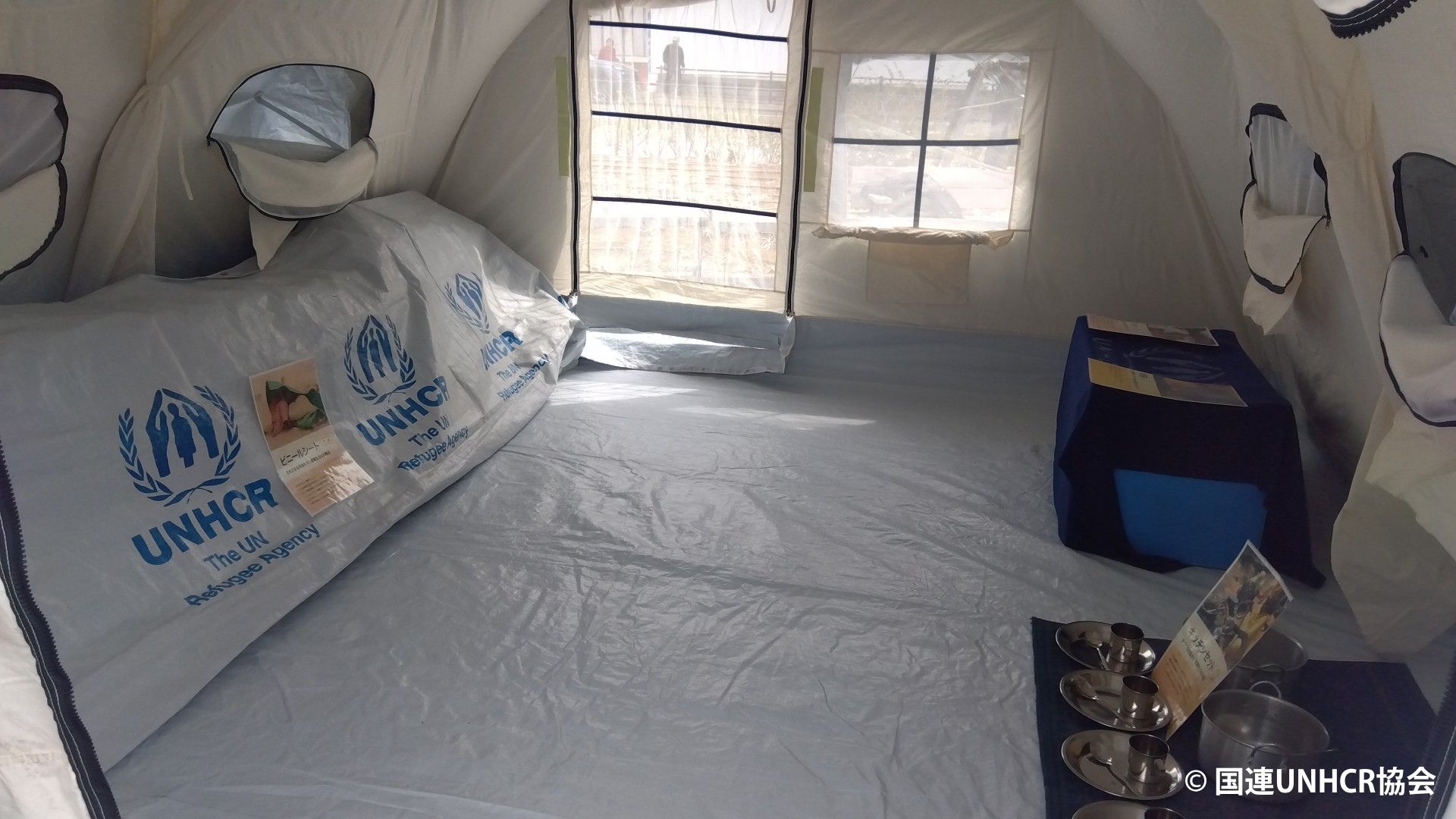 ③家族用難民テント「自立式家族用テント(Self-Standing Family Tent)」の展示