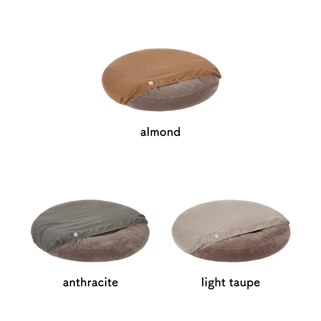PALOPAの人気アイテム・丸型犬用ベッドに対応した専用の替えシーツです。オーガニックコットン70%を使用したやわらかな生地は耐久性にも優れ、洗濯機で丸洗いできる仕様でいつでも清潔をキープ。滑らかなフィット感でベッドの形を美しく保ちながら、抜け毛や汚れから犬用ベッドを守り、小型犬から大型犬まで快適に使える設計です。ナチュラルな色味とミニマルなデザインは、どんなインテリアにも自然に調和。“おしゃれで洗える犬用ベッドシーツ”として、清潔さと心地よさの両方を求める飼い主にぴったりのアイテムです。
